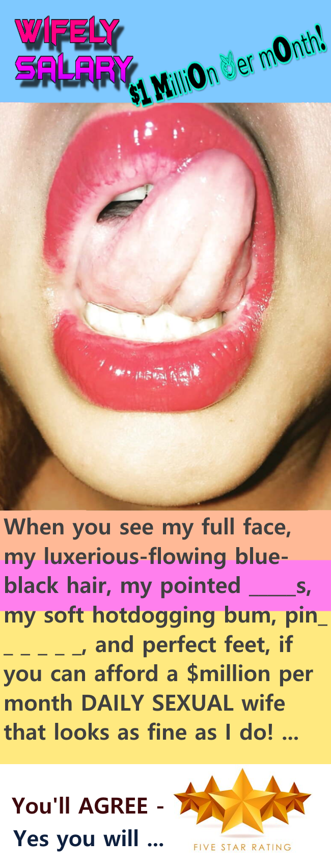for this same Tongue Pic 25 + $1,000,000.00 Wifely Salary PDN & PNG Pics -